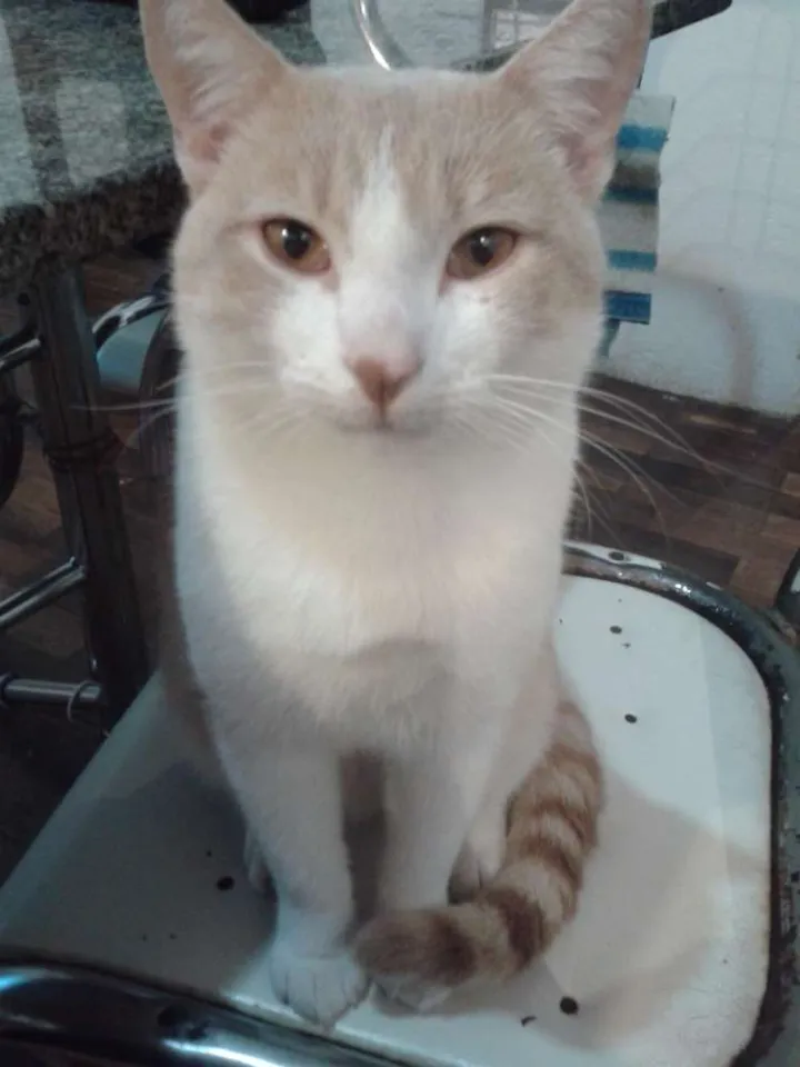 Ele é dócil, sempre foi calmo e nunca foi maltratado estava pesando aproximadamente três quilos e meio. Ele foi pego pela minha vizinha que sumiu com ele pois ele brigava com o gato dela que entrava na nossa casa para comer a comida dele ( pois ela não alimentava bem o seu gato) , estamos procurando ele por Viamão desde que soubemos disso uma semana depois dele sumir, tenho um irmão deficiente que era extremamente apegado a ele e acabou desenvolvendo depressão pelo desaparecimento do gato.