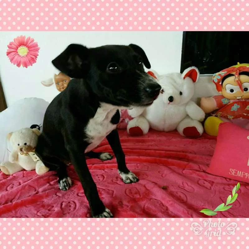 Todas as fotos que tem borda rosa é da cachorra fêmea, e todas com borda azul é do macho.