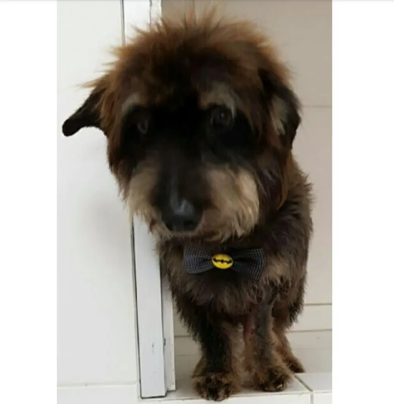 Max (nome dado por nós) foi encontrado em Balneário Camboriú. Ele estava muito magro e fazendo xixi com sangue na frente de uma Pet Shop. Esta Pet Shop se comoveu com sua situação e internou ele, dando medicamentos, alimentação e vacinas totalmente de GRAÇA. Porém, eles já cuidam de outros animais que também precisam de um lar e não poderiam ficar com ele, sendo assim, ele volta para a rua durante o dia e a noite se ele voltar, ele pode dormir na pet shop. Ele está muito magro, pesando 6kg. Tem entre 8 a 10 anos de idade. Não é castrado.