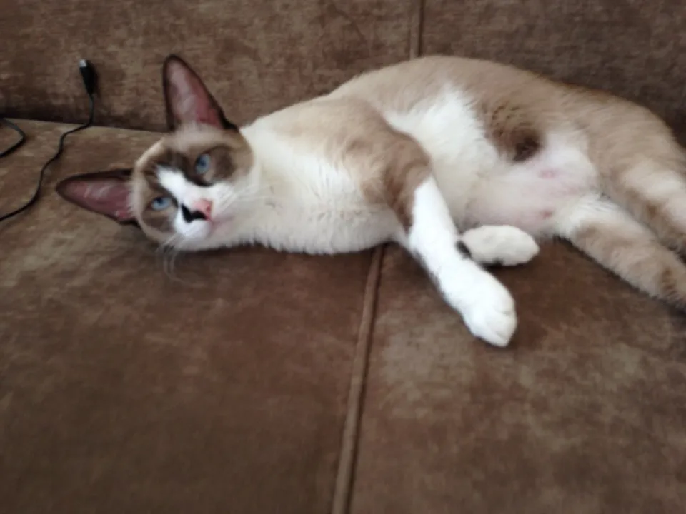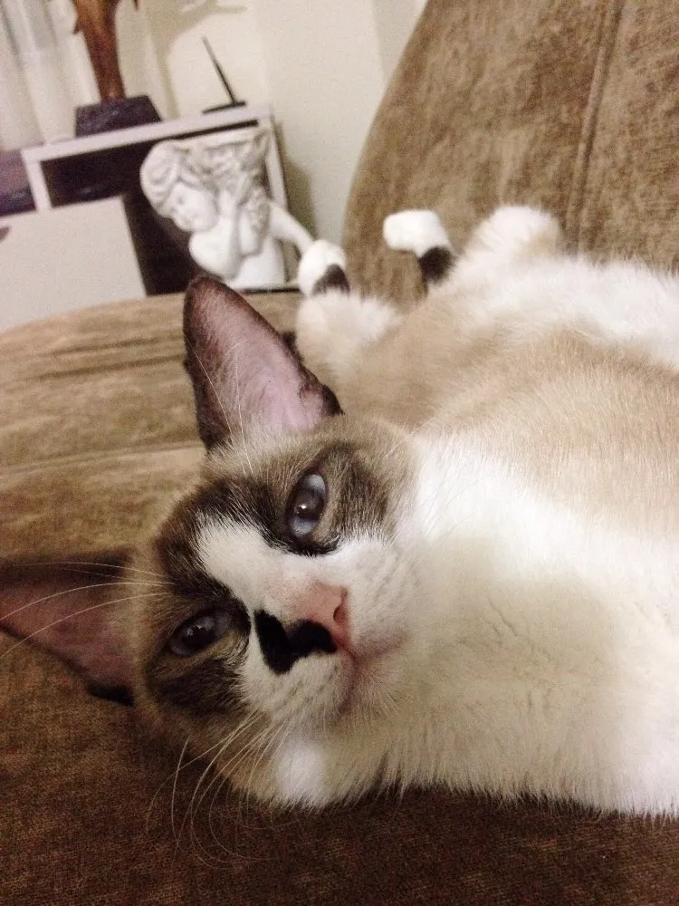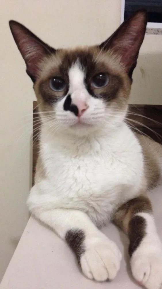A Giuny é um gato comunicativo, como todo siamês. Ela também gosta muito de brincar, principalmente com bolinhas de papel amassado. E é super carinhosa.