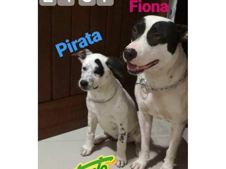 Pirata com 7 anos pelagem com machas pelo corpo e brincalhão.Fiona com pelagem mancha nos olhos e é a dominante.Ambos foram criados juntos desde filhotes.Doando por motivo de obras.