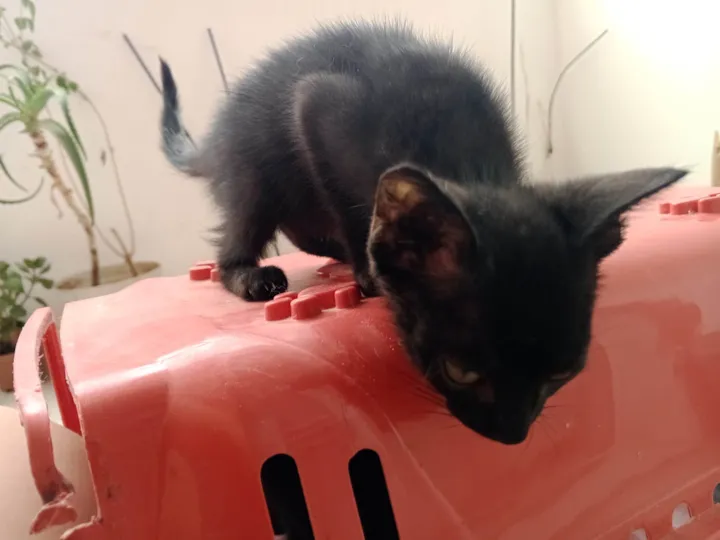 Encontramos um adorável gato macho da raça SRD (sem raça definida), com pelagem preta e menos de 2 meses de idade. Ele é de porte pequeno e apresenta um temperamento bem curioso, oscilando entre independente e carente. Esse pequeno felino tem a energia típica da sua idade e adora explorar novos ambientes, mas também não dispensa um carinho ou uma brincadeira.