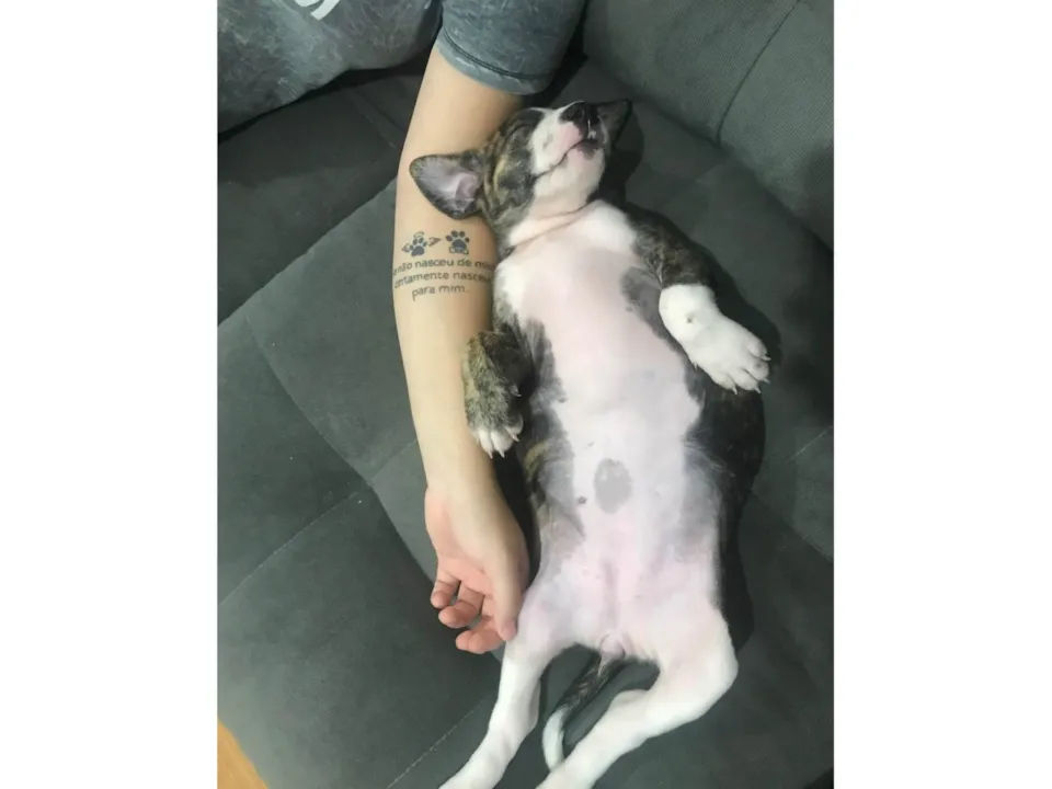 Penélope é uma adorável cachorrinha da raça Pit-Bull, com pelagem rajada e apenas entre 2 a 6 meses de idade. Seu porte é pequeno e, apesar de ser jovem, já demonstra um temperamento admirável. Ela é dócil, calma e brincalhona, o que a torna uma companheira perfeita para qualquer família. Penélope é sociável, se dá bem tanto com crianças quanto com idosos, além de ser amigável com outros cães e até gatos.