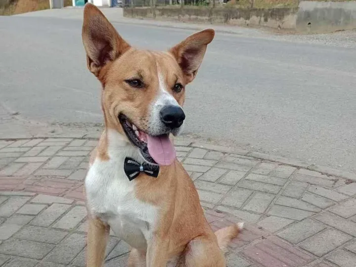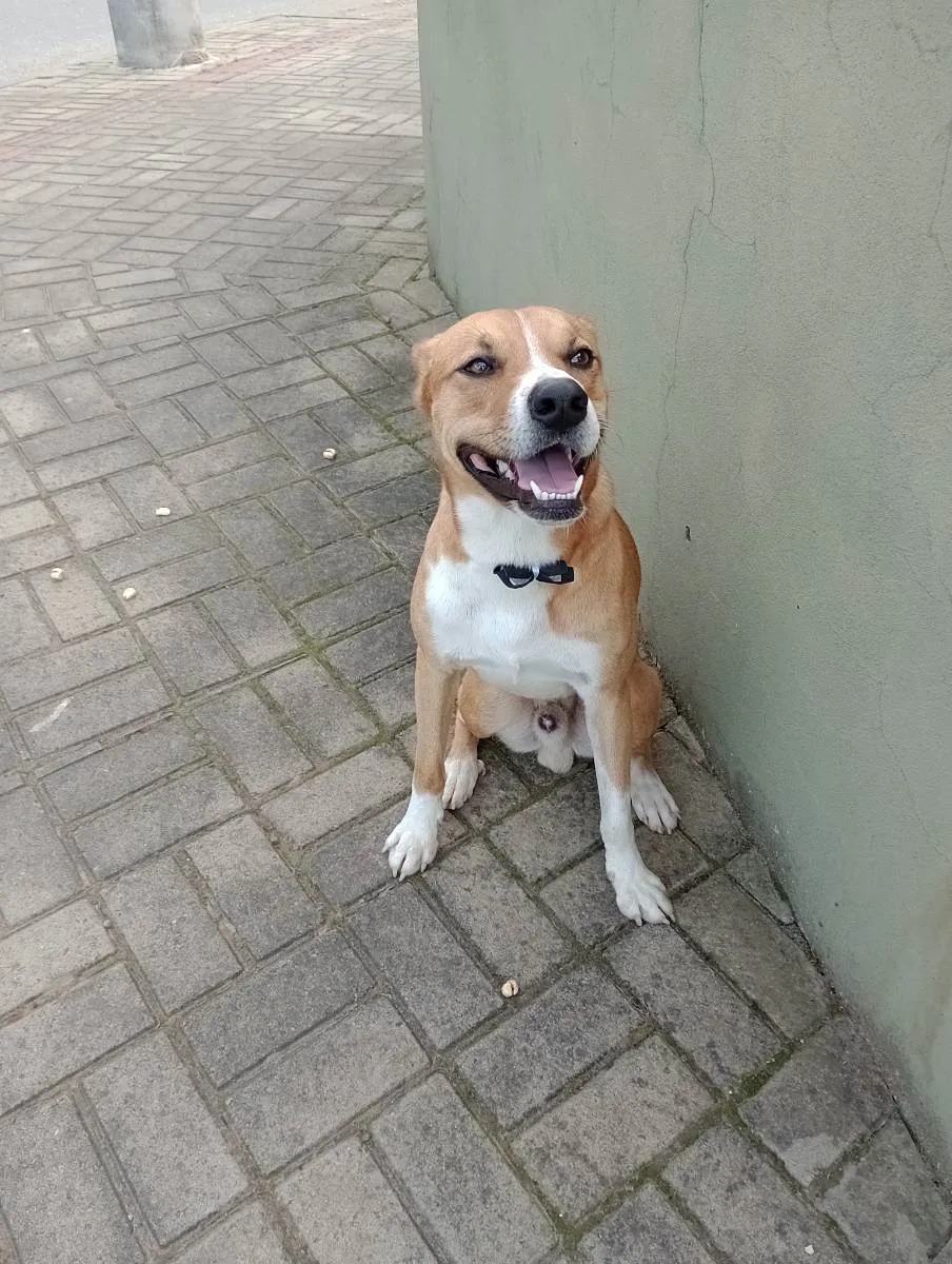 Este animal está perdido em Luiz Alves, estou cuidando dele na rua, tenho cinco cães e não tenho condições de adotar mais um. Ele uiva muito, quer carinho o tempo todo, fica no muro olhando, me corta o coração, meus cães não são muito amigáveis, tenho medo que de confusão. No começo ele é arisco, mas quando ganha confiança fica muito dengoso