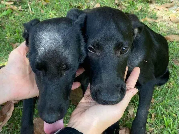 Foram resgatados de um local onde estavam ameaçando a vida deles, resgatei, vacinei, testei e vermifuguei, mas não posso ficar com eles, moro de aluguel onde pode ter apenas um tentei escondê-los mas o dono mora do lado, não tem como.Eles são obedientes, carinhosos e se dão bem com outros cachorros.
