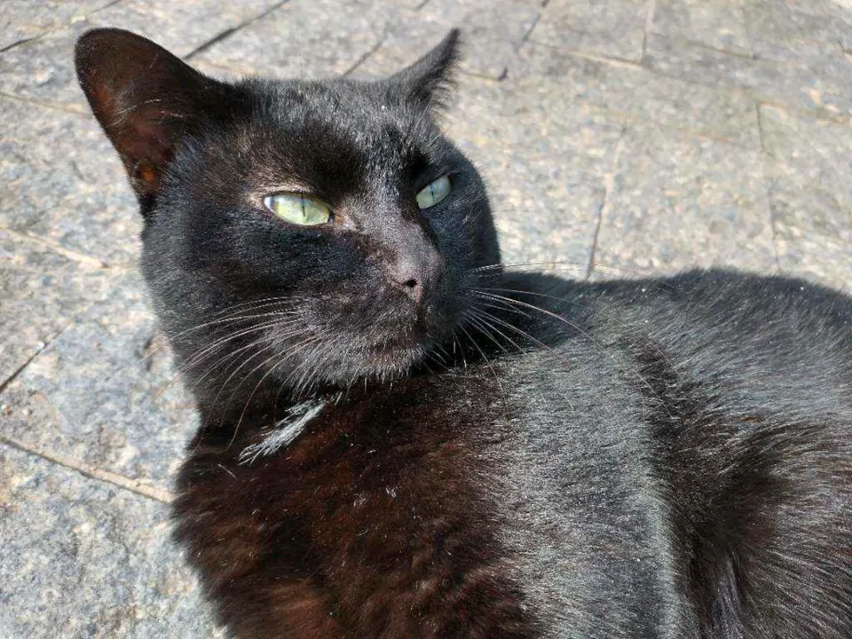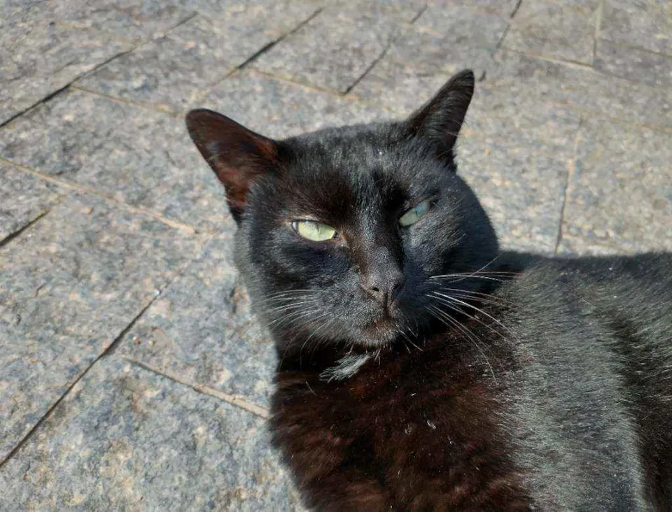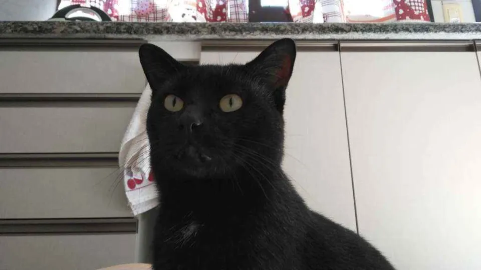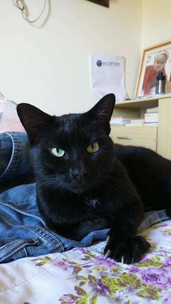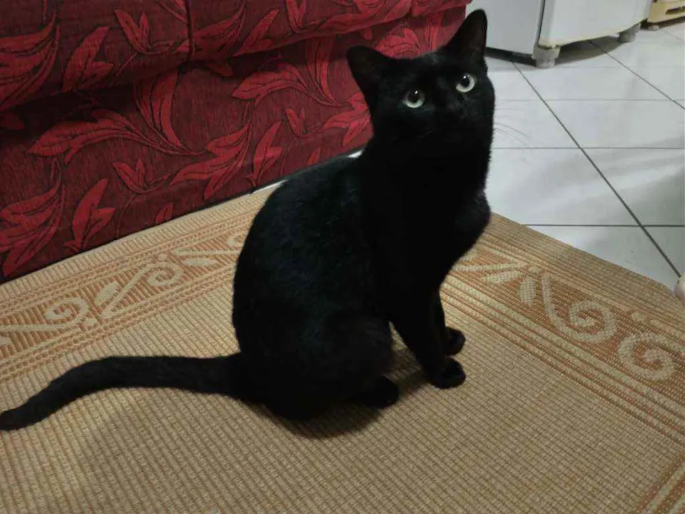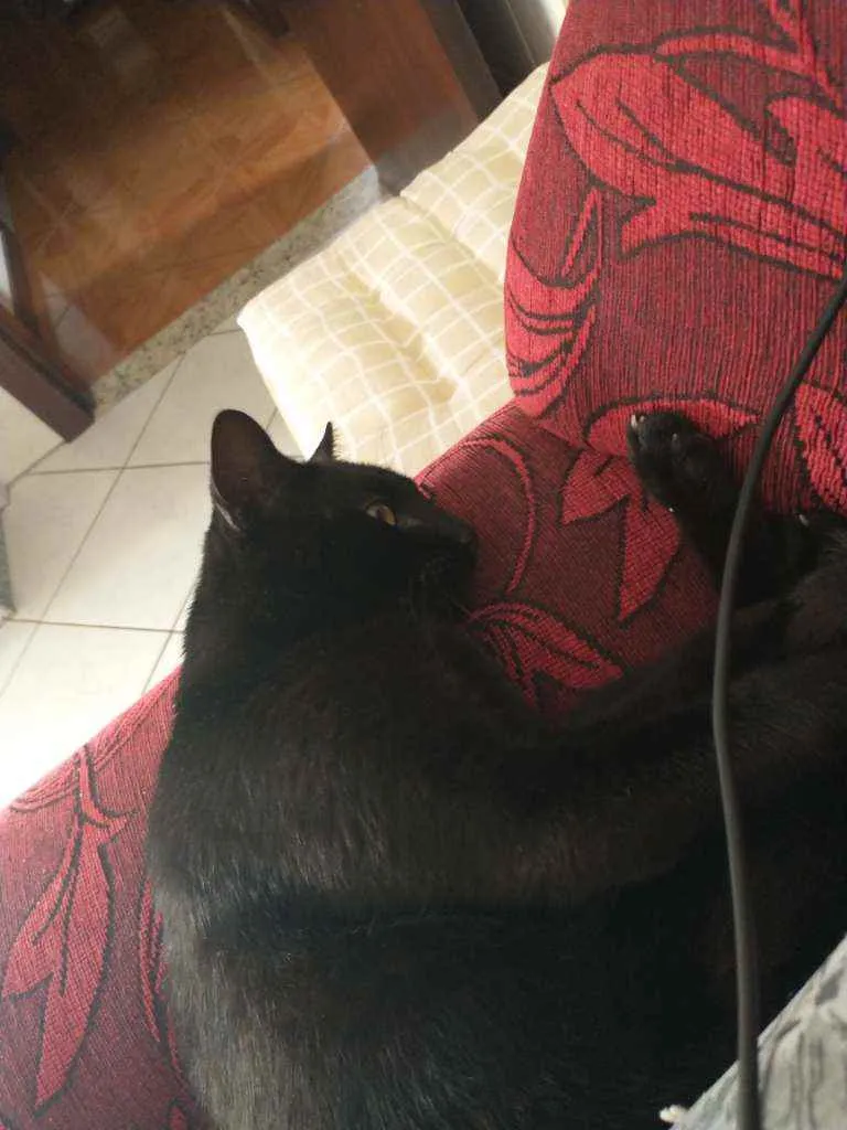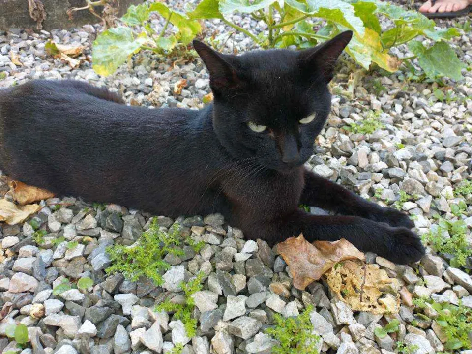 Gatito é um gato preto com uma pequena mancha branca no pescoço, ele é calmo e ama carinho, ultimamente ele tem brigado muito então tem machucados pelo corpo dele, recentemente ele perdeu o irmão e está sentindo sua falta, desde de que o barriguinha (irmão dele) sumiu ele mia o dia inteiro procurando ele.