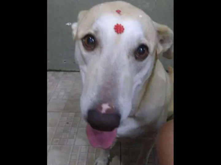 Oi, eu sou a Larin, uma mistura de labrador...