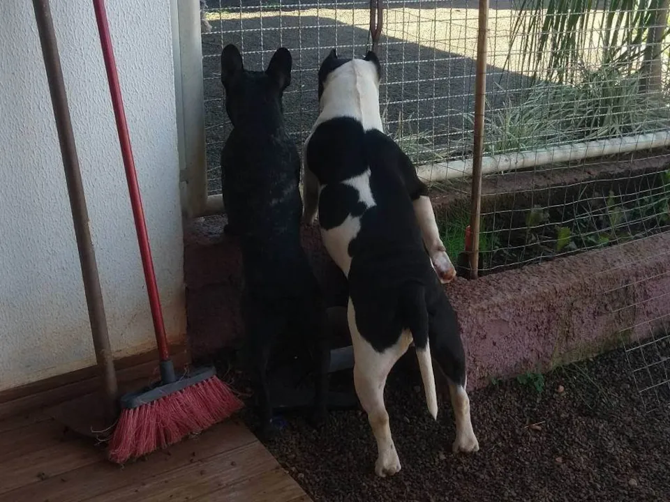 Ao lado dele está sua irmã inseparável, a Meguie, uma American Bully de 4 anos, castrada, muito dócil e extremamente amigável. Ela possui pedigree certificado e encanta com seu temperamento tranquilo e amoroso. Está sempre disposta a brincar, receber carinho e fazer companhia. Uma verdadeira parceira para qualquer momento!
