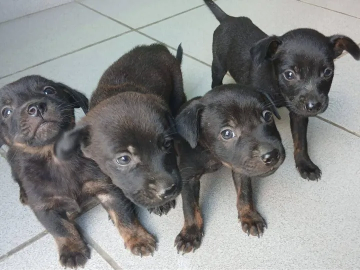 Esses quatro filhotinhos são fruto de uma gestação inesperada da nossa cachorrinha. São dois machos e duas fêmeas, muito carinhosos, brincalhões e cheios de energia.Infelizmente, não temos condições de ficar com eles, pois já temos três cachorros e não conseguimos oferecer a estrutura e os cuidados necessários para todos.Eles estão disponíveis para adoção e esperando um novo lar cheio de carinho.