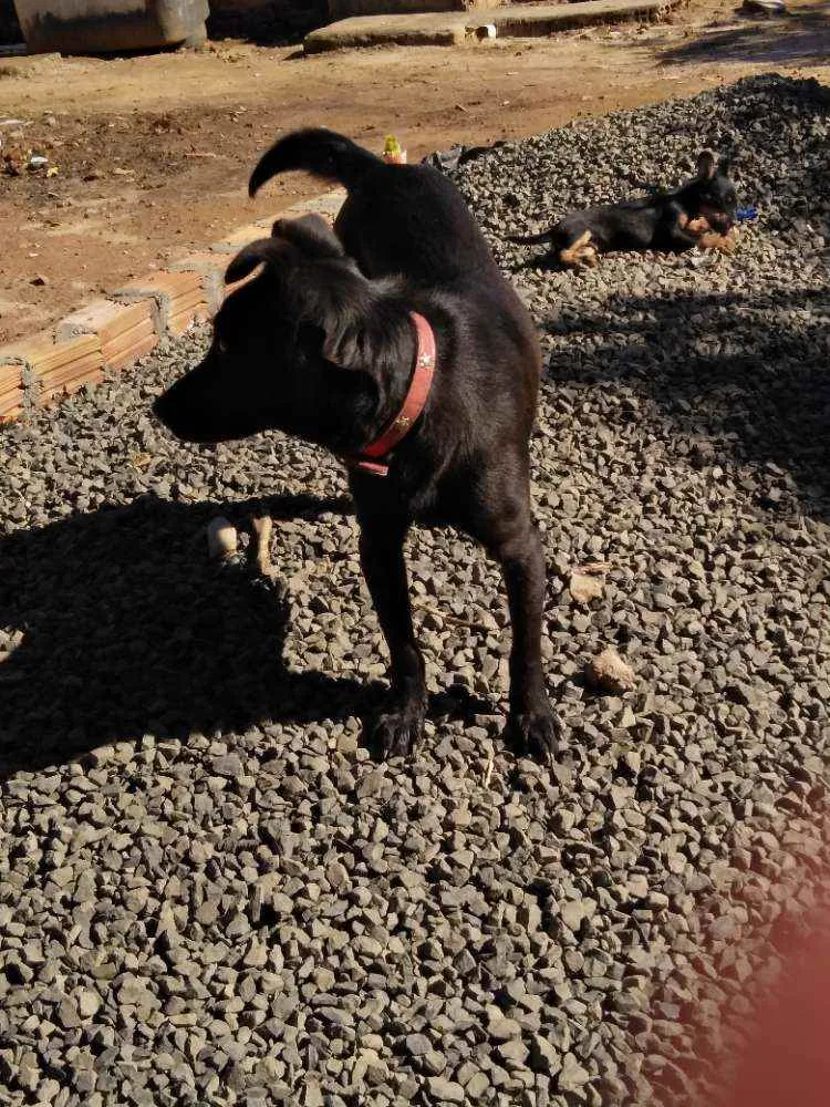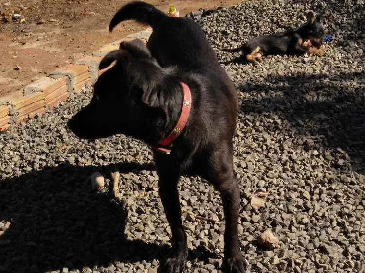 Doa-se um dog preto, porte médio, raça indefinida com 2 anos.
