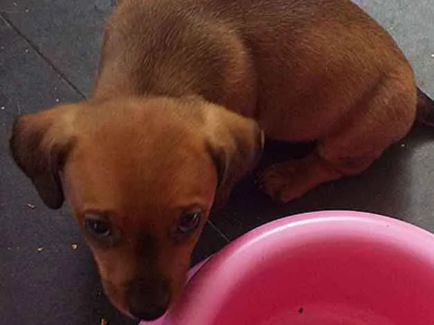 Última fêmea da ninhada, 45 dias. Esperta e amorosa. Deve ser vacinada ainda esta semana. Seus 4 irmãos e irmãs já foram adotados(as). Sou comilona, limpo o prato e ainda faço cara de pidona!