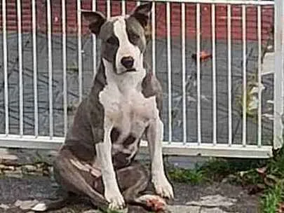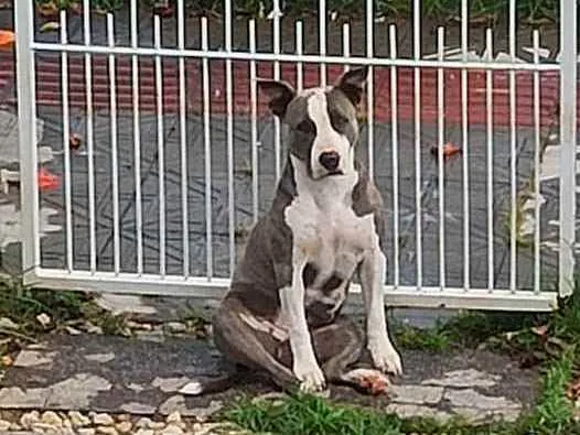 Vamos nos mudar e infelizmente não tenho como levar a Aimê para apartamento. É linda, amorosa, fujona e cheia de energia. Convive com outros animais se socializada (tem gato e mais cachorros aqui em casa) e só se estranhou uma vez com cachorro pequeno tentando comer comida dela. É excelente pra proteger o quintal por que mede medo pela cara parecida com Pitbull, mas nunca mordeu ninguém. Ela não está castrada. Precisa de uma família que dê muita atenção e tenha um bom quintal. De preferência alguém que tenha experiência com cachorro dessa raça ou similar.