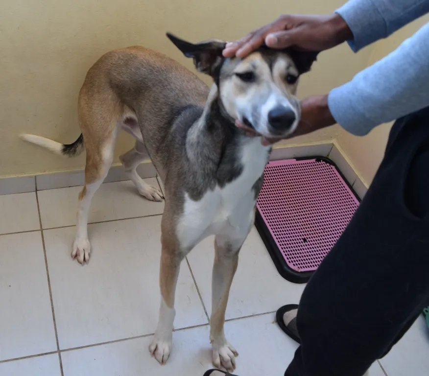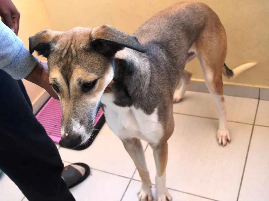 Bacon é um macho de um ano e meio de idade, filho de mãe da raça Galgo com pai SRD. Saudável, com vacinas em dia e desverminado, come apenas ração. As condições para doação: Estou doando por motivos de espaço físico disponível; por isso, as condições para doação são: a pessoa necessita ter canil ou espaço fechado como um jardim ou quintal, bem cercado, pois ele não está ambientado com espaço aberto livre. Apenas conhece praia ou campo de futebol, onde é levado para correr. Dócil e afetuoso,mas como é forte e ágil, não é recomendado para lida com crianças ou idosos. Aceita coleira para passeio.