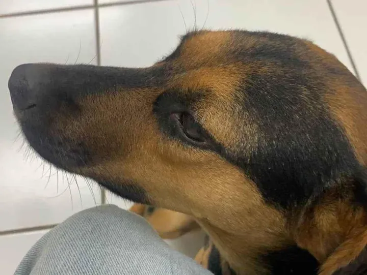 Cadela dócil encontrada na região da Cachoeira do Bom Jesus. Está com uma pata machucada e a outra está fraturada. Já realizei o Raio X e encaminhei ao DIBEIA que cuidará da parte da operação, mas não consigo ficar com ela, pois já tenho uma cadela idosa que está em pós-cirurgico de um tumor.