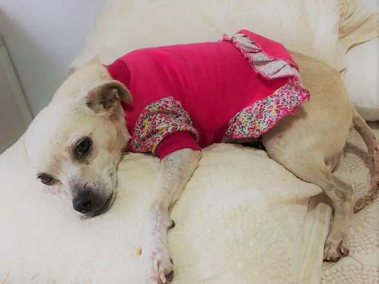 Essa é a Regina, uma cachorrinha que foi abandonada em plena rua tarde da noite.