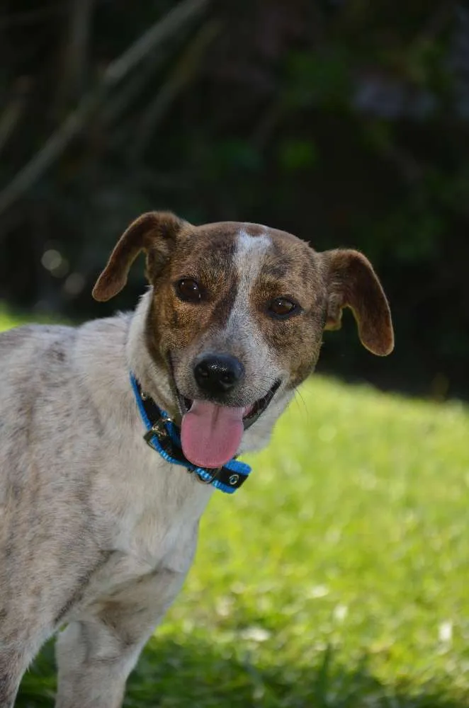 Deve ter entre 11 a 12 meses de idade, 10 kg, macho e já está castrado e vacinado. Convive bem com outros cães e sabe ser uma ótima cia.
