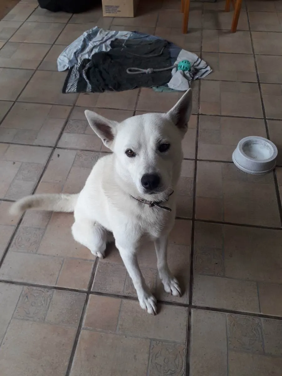 Já sabe alguns comando como sentar, deitar, dar as patas, ficar, e está aprendendo o "não".