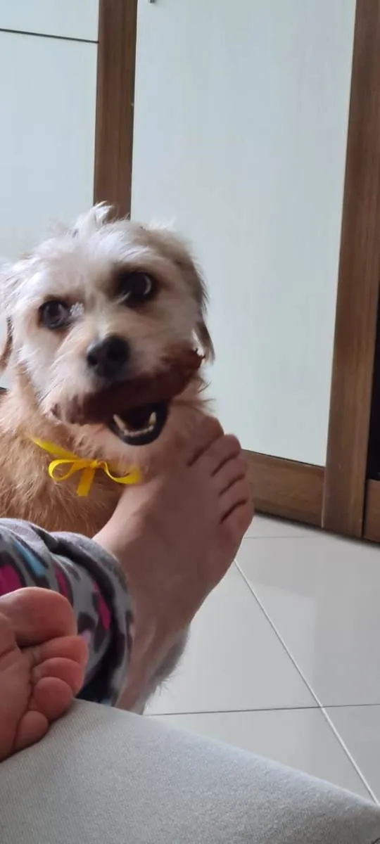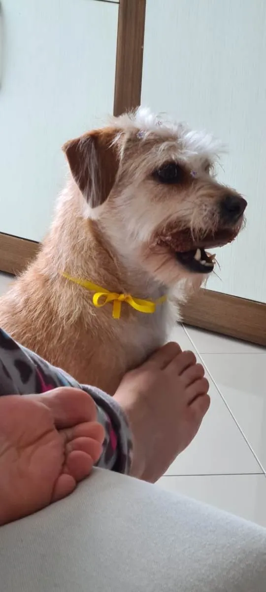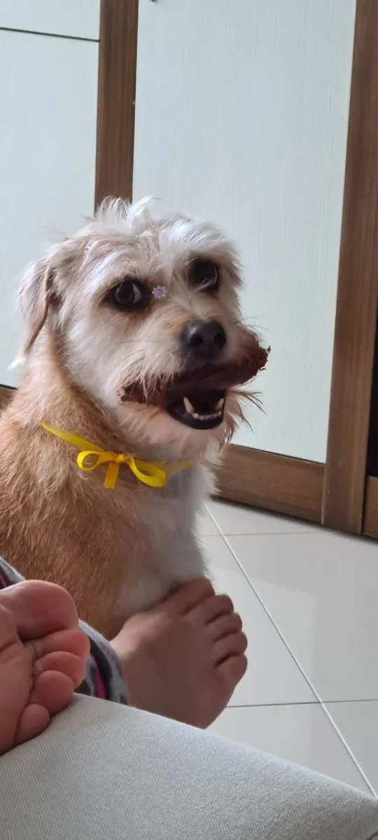 Paçoca é uma cachorrinha muito dócil, obediente, faz as necessidades sempre pela manhã e ao final da tarde durante um passeio rápido. Tomou todas as vacinas, vai semanalmente no PetShop para tomar balho e tosa. Motivo da doação: Pretendo me mudar e não tenho como como cuidá-la,