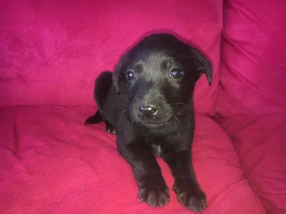 •a mãe é labrador puro mas o pai é desconhecido, possivelmente vira lata.