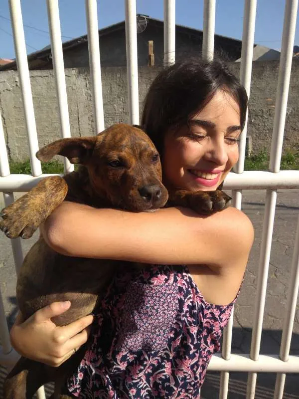 Foi criado com uma cadela, o que contribui para a interação dele com outros animais...