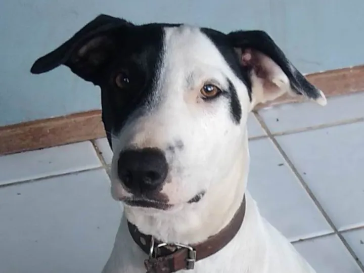 Zatar um cão bonzinho, fica bem sozinho ou acompanhado, responde a comando como senta e vai pra casinha, é um cachorro bem brincalhão e amoroso. Mistura de Srd e Bull Terrier. Motivo, mudança de país.