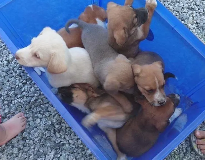 7 filhotes encontrados com fome. Estou alimentando mas tenho 5 caes,precisam de um lar e n'ao posso ficar com eles. Eu me comprometo com o sustento deles.