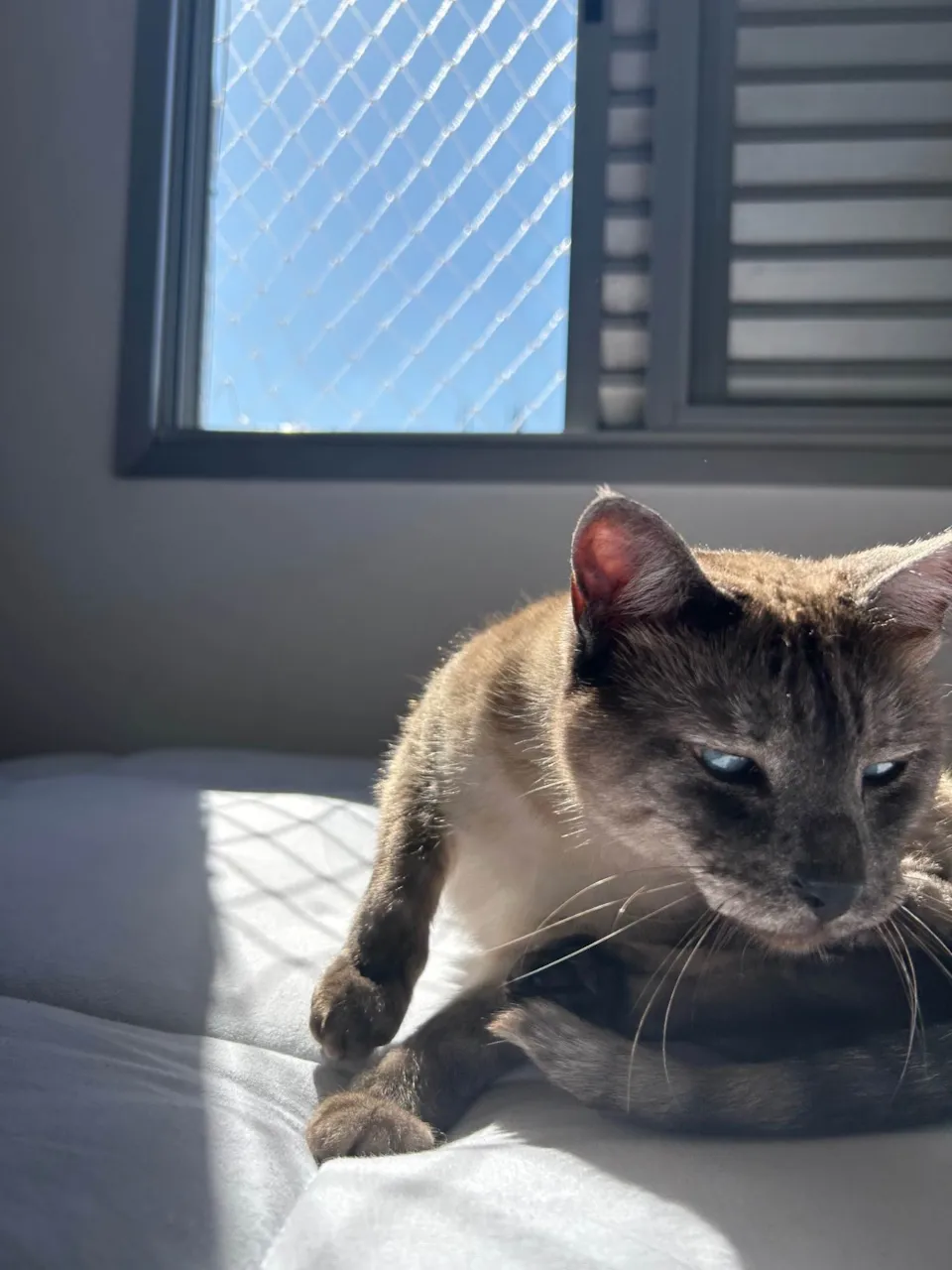 É uma gata super dócil e amorosa, morava com um parente. Adotei por ela precisar de um lar, mas não se adaptou com meu cachorro, fica distante por conta dele, estou procurando um lar que ela seja acolhida e amada, que possa ser a gata carinhosa que é.