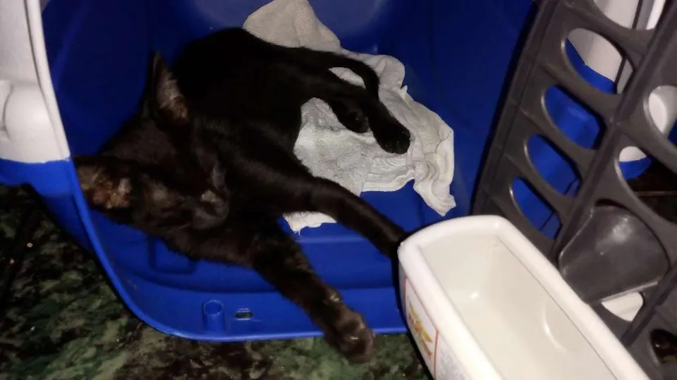 Olá, eu estou com um gato filhote, pequeno, pelagem preta, olhos verdes, à espera de um novo lar. Eu não posso ficar com o gato, porque eu já tenho uma gata adulta que deu briga com o gatinho. Houve rejeição e estou com medo do que pode acontecer.