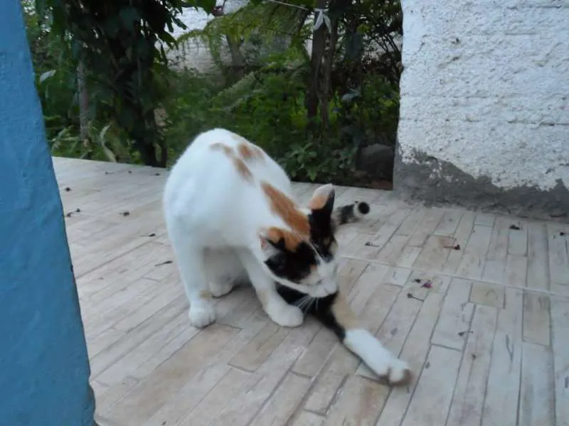 Olivia a gatinha é castrada, desverminada e vacinada, tem pelagem branca com manchas marrons e pretas, muito linda, carinhosa e esperta, vou mudar para condominio onde não é permitido animais.
