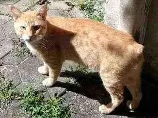O Rabito é um gato de pêlo curto amarelo tabby, macho, com cerca de 6 a 7 meses de idade, muito amigo dos humanos e de outros gatos, por isso presumo que tenha sido abandonado.