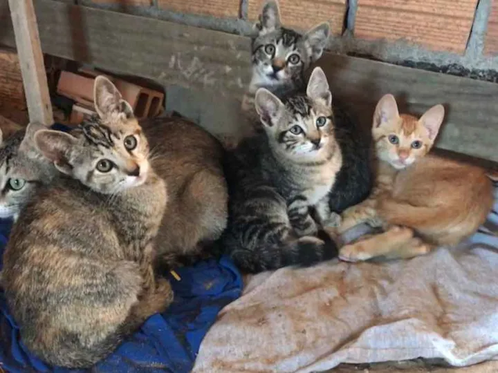 Neste final de semana abandonaram a mamãe com quatro filhotes em um construção na minha rua . Estamos cuidando , mas merecem um lar e uma família que lhes de muito amor . Estão no bairro Muquem/ Rio Vermelho.