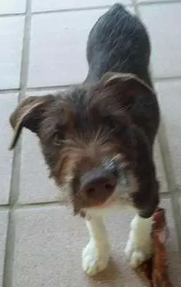 È um cãozinho muito bonito, porte atlético, com pelagem curta marrom com patinhas brancas. Olhos grandes castanhos amarelados. Está vacinado e desverminado, É alegre, ativo e esperto. Adora brincar! É ideal para quem tem espaço e criança.