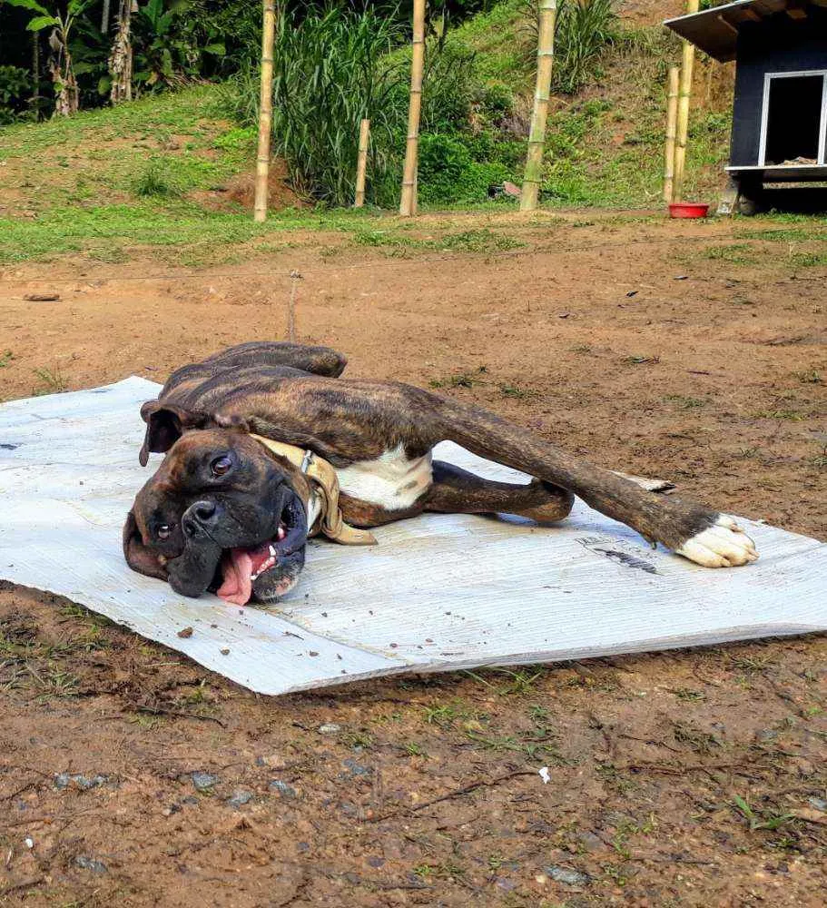 Ele é um cachorro de porte gigante, mas muito dócil. Nunca faria mal a ninguém, por isso não tenham medo de se aproximar.
