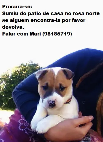 No ultimo domingo minha cachorra foi roubada na frente da minha casa Ela tem apenas 55 dias. Tive informaçoes que ela estaria em Itajai SC e que foram quatros mulheres em um carro. Que souber alguma coisa dela por favor me avise.