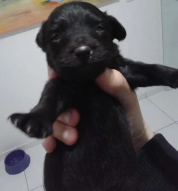 Adote um dos nossos lindos bebês SRD! Duas fêmeas marrom e marrom com branco e dois machos pretinhos prontos para receber amor e carinho.