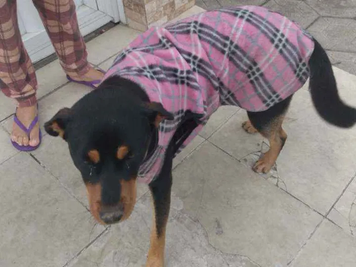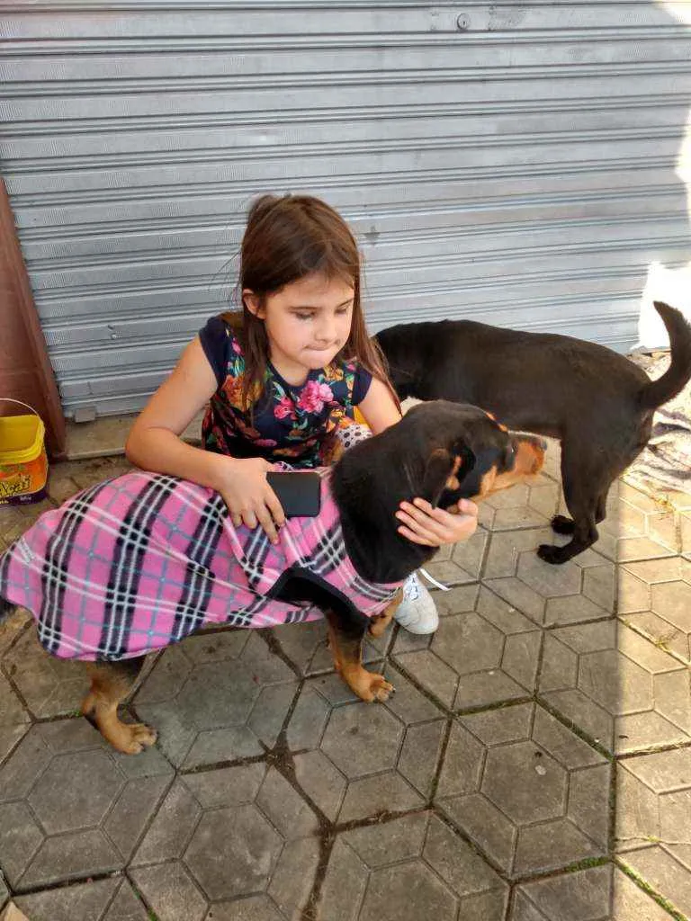 Apareceu em minha rua, cachorra super dócil,gosta de criança. Ótimo para quem quer um cachorro pra proteger casa, sítio. Quem for adotar ela,vai ganhar uma casinha que ela tem, roupinha tbm. Ela não é minha, mas estamos cuidando dela como podemos . Ela fica na rua dentro da casinha .. por favor quem puder adotar ela. Entrar em contato. Infelizmente ela fica muito vulnerável na rua, já levou acidente e já colocaram venenoso na comida dela. Eu já dei remédio para vermes . E injeção.