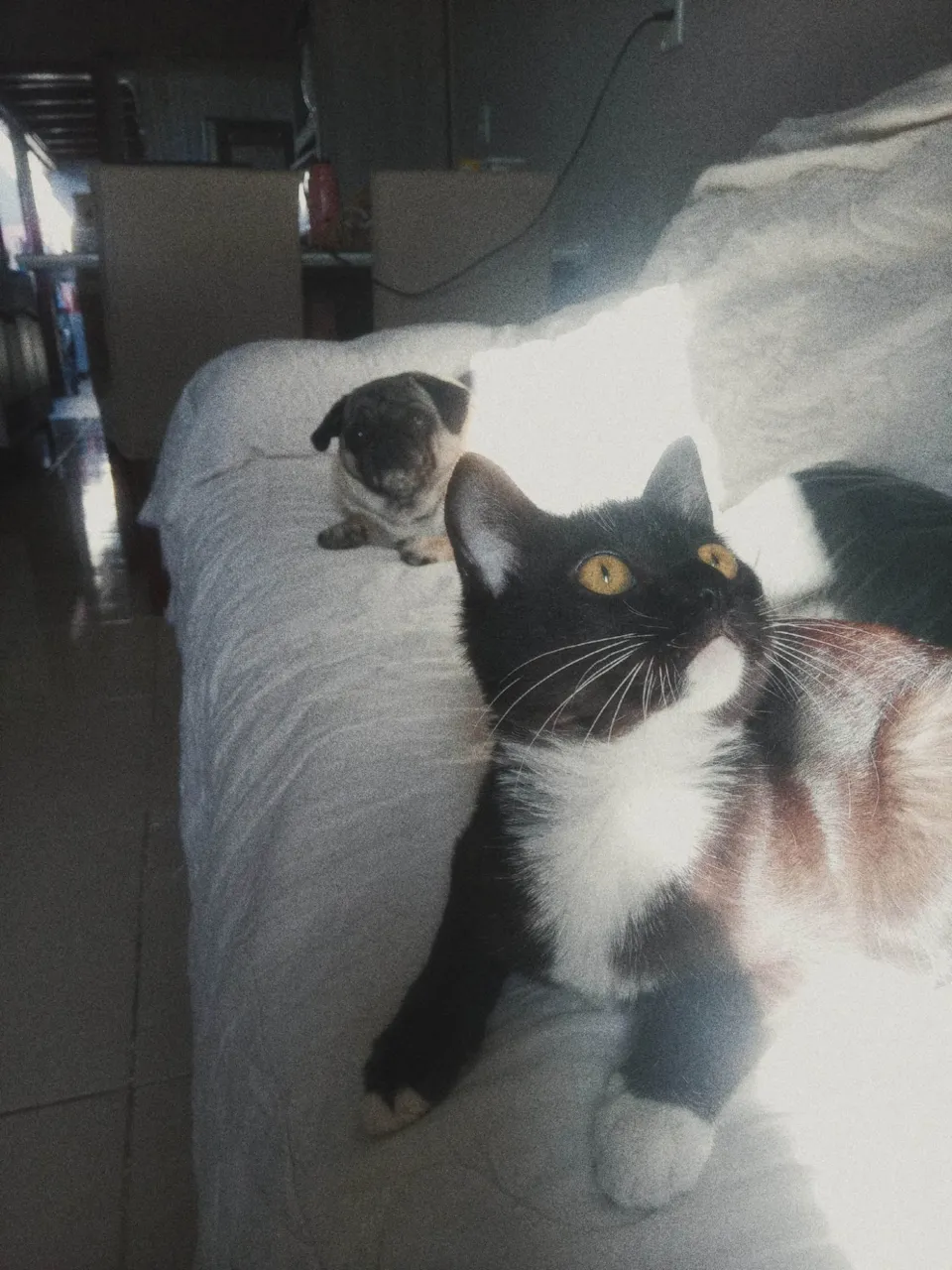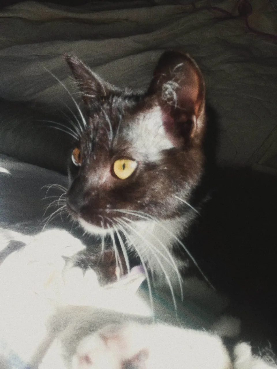 Essa gatinha apareceu aqui na porta de casa bem filhote, estamos cuidando há uns 20 dias. Ela é muito amorosa e carinhosa, ronrona toda hora. Infelizmente não podemos ficar com ela porque temos uma gata adulta muito arisca e nada aberta a novas amizades. A Mia tenta fugir pra rua, então tem que ter bastante atenção pra isso.