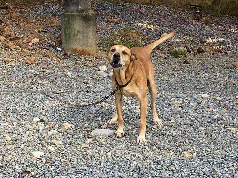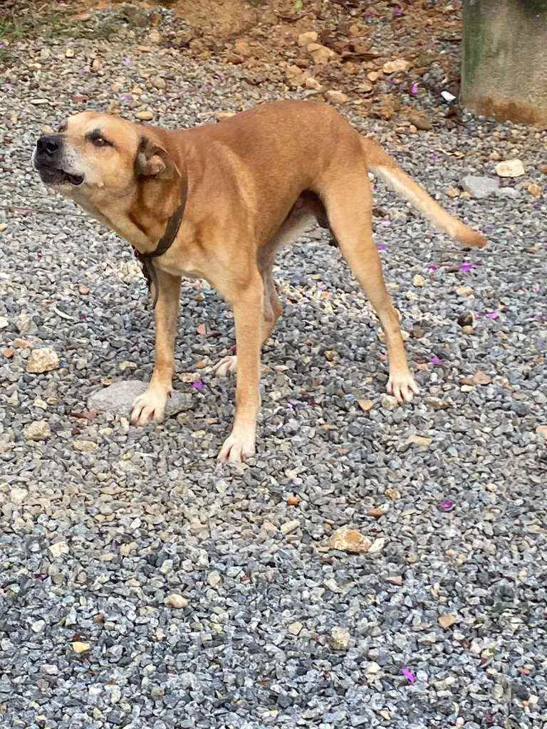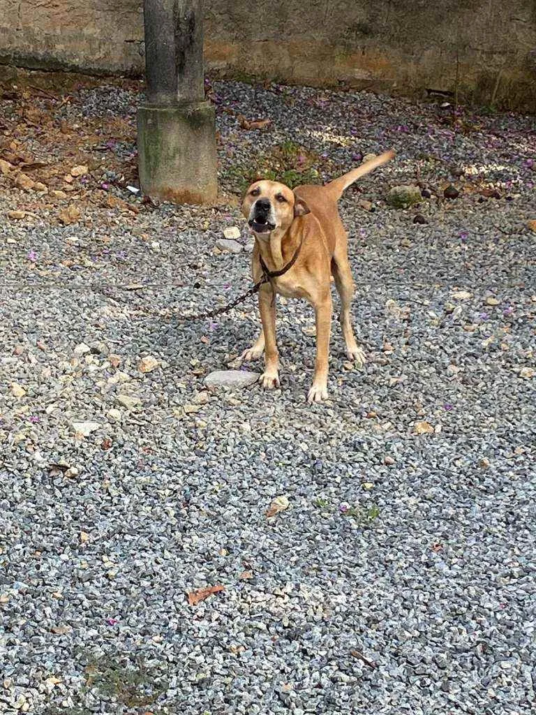 Cachorro está comigo desde bem pequeno, porém sou idosa (70 anos) e como ele é de porte grande quando tenta brincar ou me agradar ele me machuca e/ou derruba. Por esse motivo desde que meu marido faleceu o cachorro fica o tempo todo amarrado. Ele é um excelente cão de guarda e bastante ativo, dócil com os familiares porém não deixa nenhum estranho entrar no pátio de casa. Cão saldável, devidamente vacinado e com vermifugo em dia também.