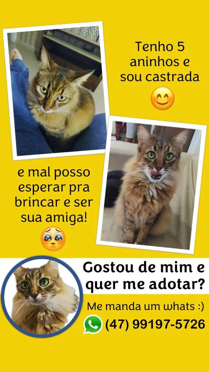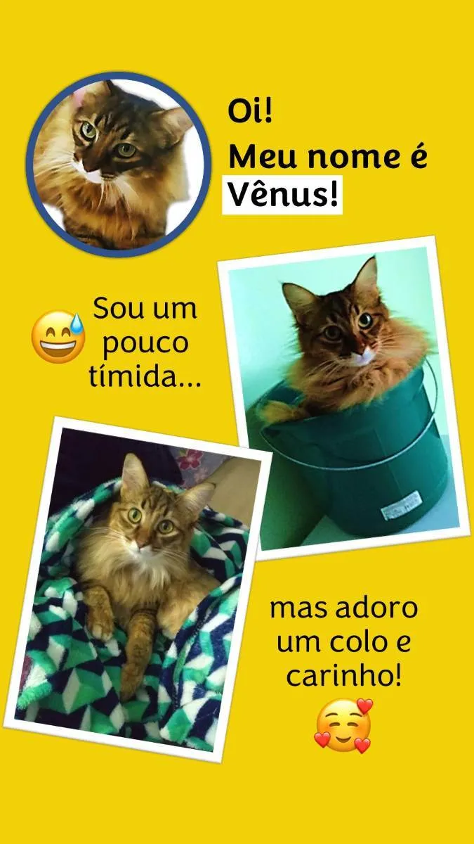 Vênus é uma gata, tem 5 anos, e é castrada. Sempre viveu dentro de apartamento, e não fica na rua ou fora de casa.