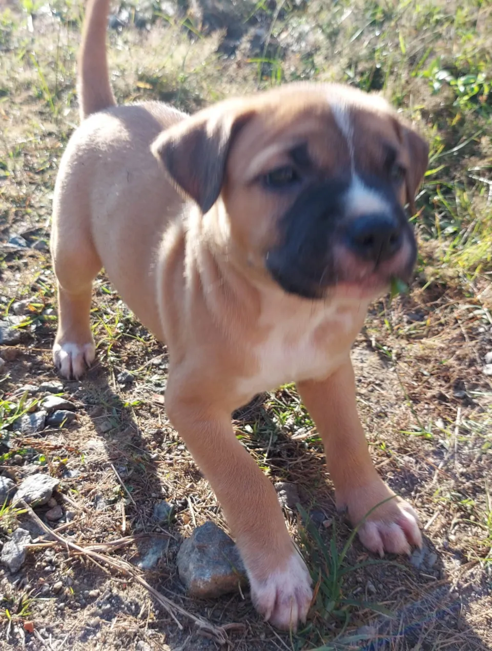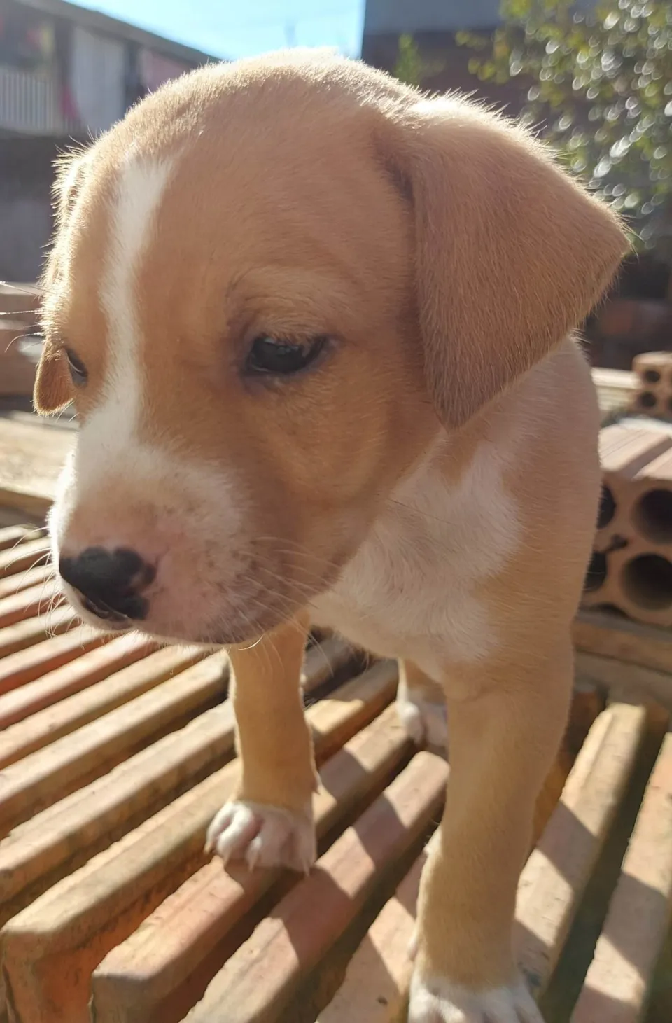 Há 45 dias, minha cadela de estimação gerou 8 cachorrinhos, dentre os quais 5 são fêmeas e o restante, machos. Todos estão saudáveis, bem nutridos e foram recentemente vermifugados. Três filhotes apresentam pelagem preta (rajada) e os demais, caramelo (variando do claro ao mais escuro).