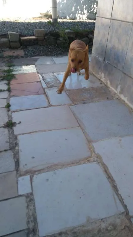 Fêmea Juli, 3 anos. Macho Ronaldinho, 2 anos. Mãe e filho. A fêmea apareceu na casa do senhor idoso, que foi dando comida e água e um cantinho com sombra.... então ela teve 2 filhotes, sendo que 1 foi adotado. O idoso adoeceu e foi transferido, sendo que a casa onde os cães vivem, está vazia. Contudo, a família faz aquisição de ração, remédios, etc e os vizinhos colaboram no tratamento e cuidados com os cães (são alimentados 2x por dia, ganham banho, vacinas, etc).
