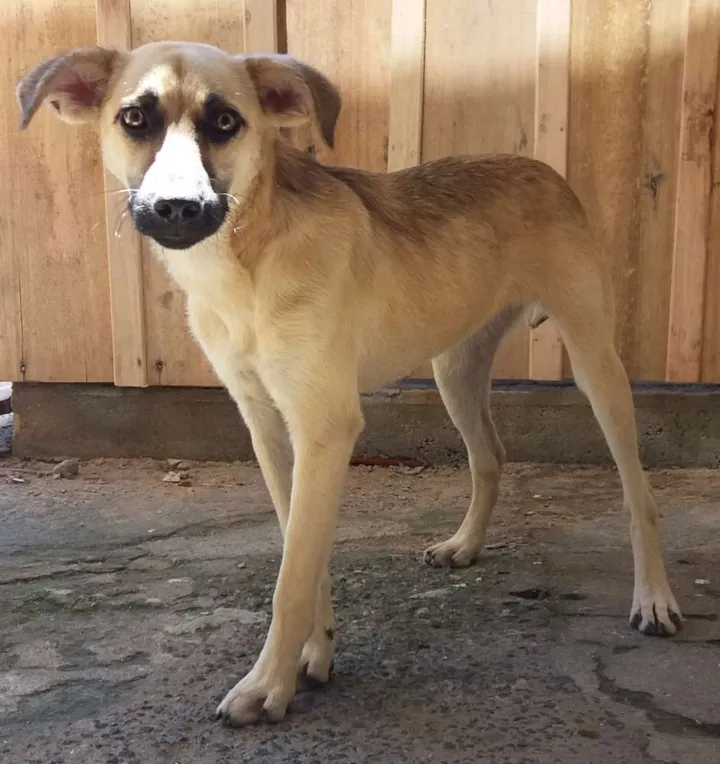 Cachorra que foi abandonada na rua, estou com ela a um mês, mas não consigo ficar com ela, já tenho outra. Muito boazinha, obediente, só que é nova ainda, deve ter meio ano de idade, carinha que assusta um pouco, mas bem doce, 45cm de altura do chão às costas. Boa para proteger a casa