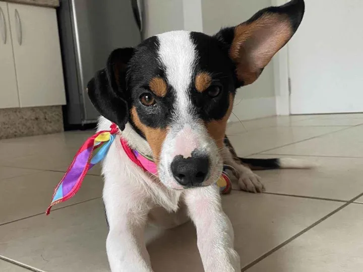macho de aprox. 8 meses (porte médio) achado na rua pra adoção. muito dócil, se dá bem com outros animais, carente, muito companheiro e faz necessidades fora de casa (bom ponto caso vc more em apartamento. ele só faz xixi e coco dentro do ap. se vc não passeia com ele e ele não consegue mais segurar)