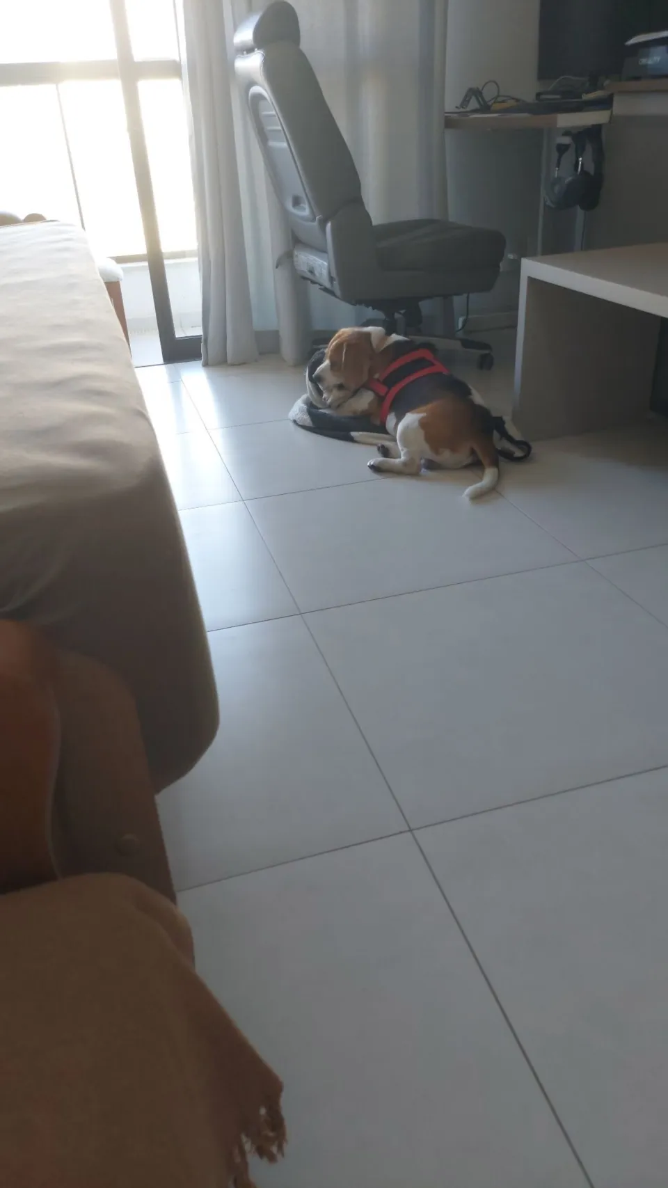 Encontrei esse macho com coleira sem identificação andando perdido nos meios dos carros no bairro Cidade Nova em Itajaí-SC. Não sei nada sobre ele, mas parece ser novo. É muito dócil, não faz as necessidades dentro do apartamento, tem que sair na rua para isso. Coloquei tapete higiênico mas ele não usou, o que aparenta ser motador de casa e não apartamento. Moro em um studio, é pequeno, e não tenho como ficar com ele. Caso o dono não apareça, espero que alguém com muito amor e espaço queira ficar com ele.