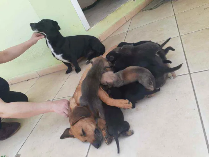 Filhotes com 40 dias para adoção, resgatei a mãe deles da rua.