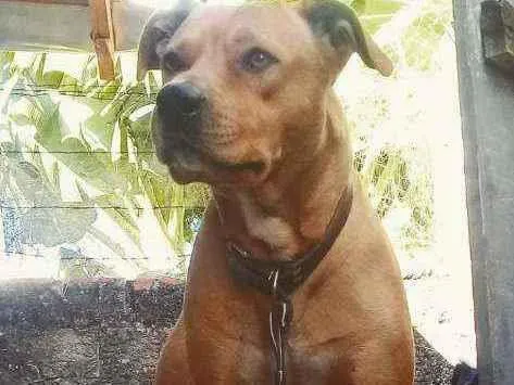 A mãe do Sansão é uma pit-bull e o pai um safadog que pulou o muro. O Sansão é castrado. Queremos doar pois nosso terreno já não tem tanto espaço e ele é um cachorro cheio de energia. Ele é um cachorro bastante territorialista, ideal para alguém que quer algum cachorro para guardar o terreno. Sua relação com outros cachorros variam bastante, alguns ele não gosta e tende a brigar, outros ele não briga. Com humanos, desde que não esteja dentro do seu terreno, ele é tranquilo, mas caso queria fazer amizade com ele também não é tão difícil, com jeito e um pouco de comida da para virar amigo dele. Mais informações entrar em contato