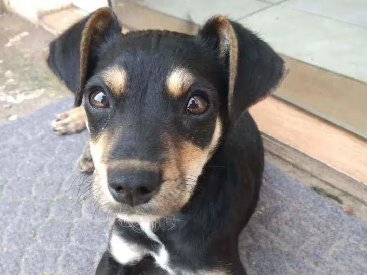 Uma fêmea dócil e brincalhona. Apareceu no portão da minha casa, creio que tenha sido abandonada. Não late nem morde, tem um pouco de medo de homens, mas não chora muito também. É fácil brincar com ela e até mesmo acariciar ou pegar no colo.