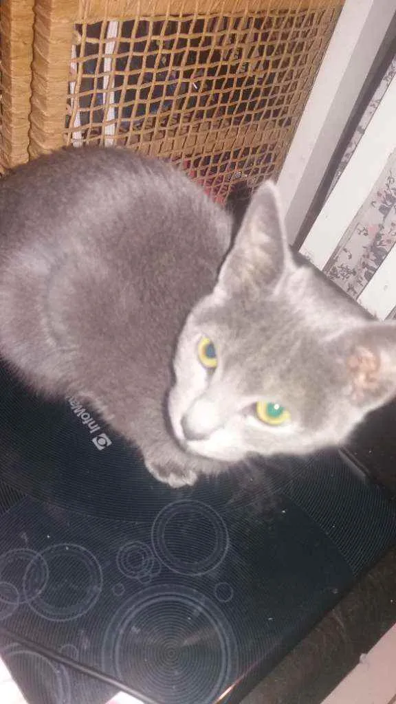 Gata de pelo e olhos cinza, pelo curto e cheio. Ela se chama Pandora e tem uma deformação na cauda, de nascença. Ela é dócil, calma e quieta. Gosta de dormir na cama, mas dorme em outro local se for posta. Aceita bem carinho e colo, e retribui com o tempo. Ela come ração, defeca somente na caixa de areia ou local destinado a isso.