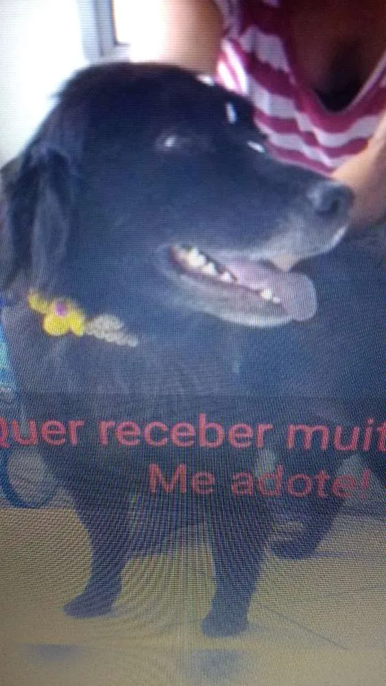 Preta é uma cachorrinha muito dócil que já sofreu muito e precisa urgente de um lar. Ela está se recuperando de uma cirurgia de hérnia por causa de um atropelamento. Se não encontrar um lar, voltará para as ruas. Precisa morar em uma casa com muro alto, pois costuma pular. Quem tiver o privilégio de ficar com ela, será muito feliz.