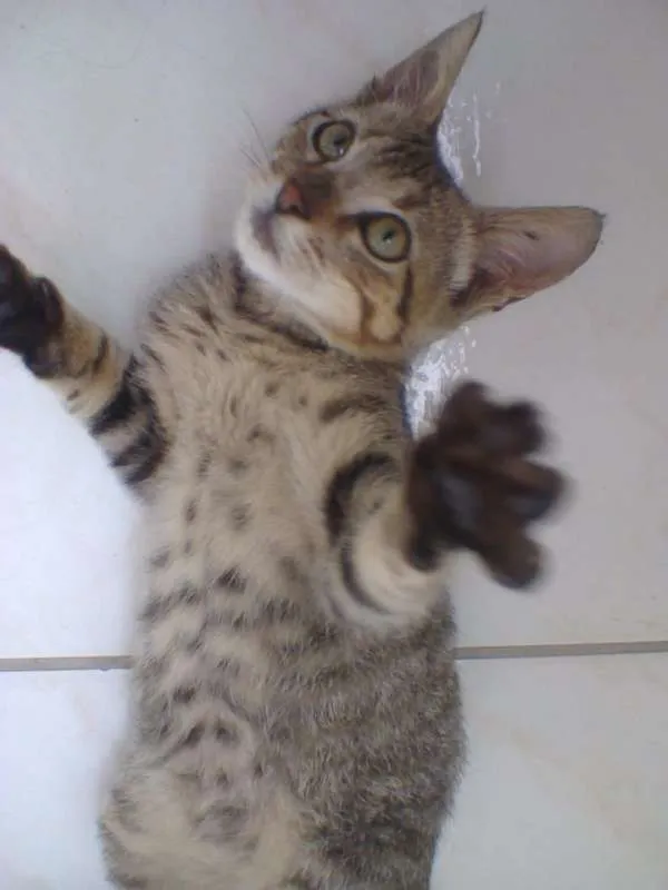 achei essa gatinha abandonada na rua tremendo de frio e fome, é uma fêmea e deve ter no máximo cinco messes e muito dócil e carinhosa.